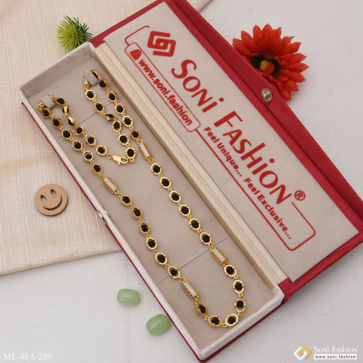 Expertly crafted for men, the 1 Gram Gold Plated Rudraksha Mala features a delicate design that adds a touch of elegance to any outfit. Each oval bead is adorned with a...