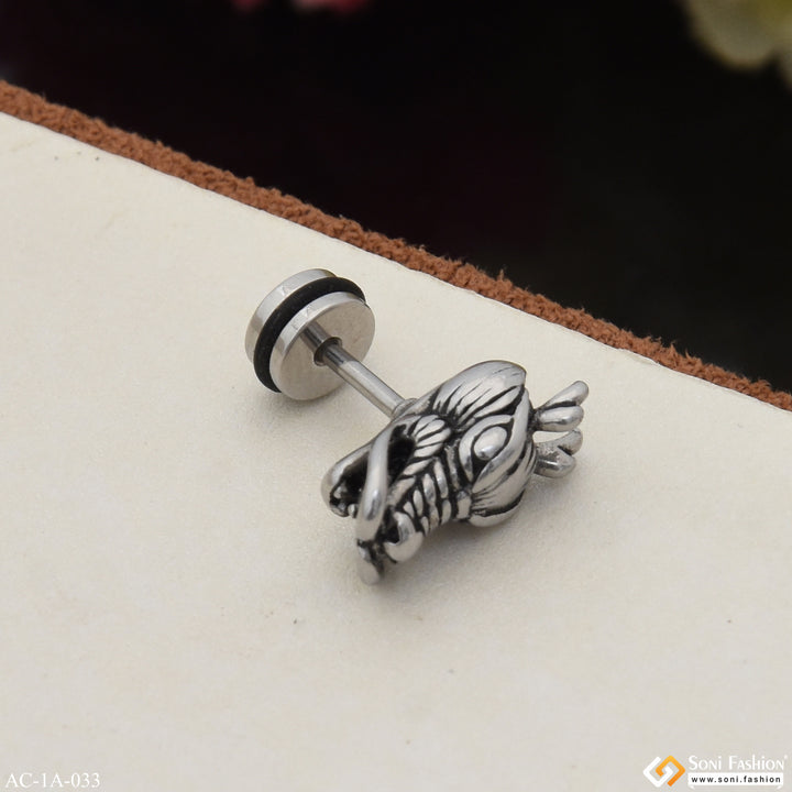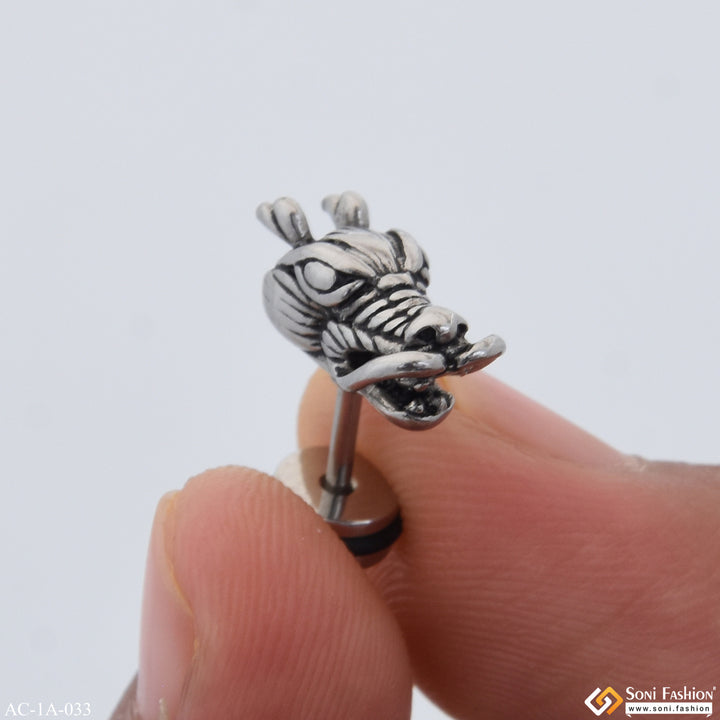 Dragon Face Glittering Design Stud Earring for Men (1 Pc) - Style A033