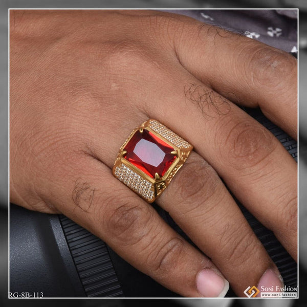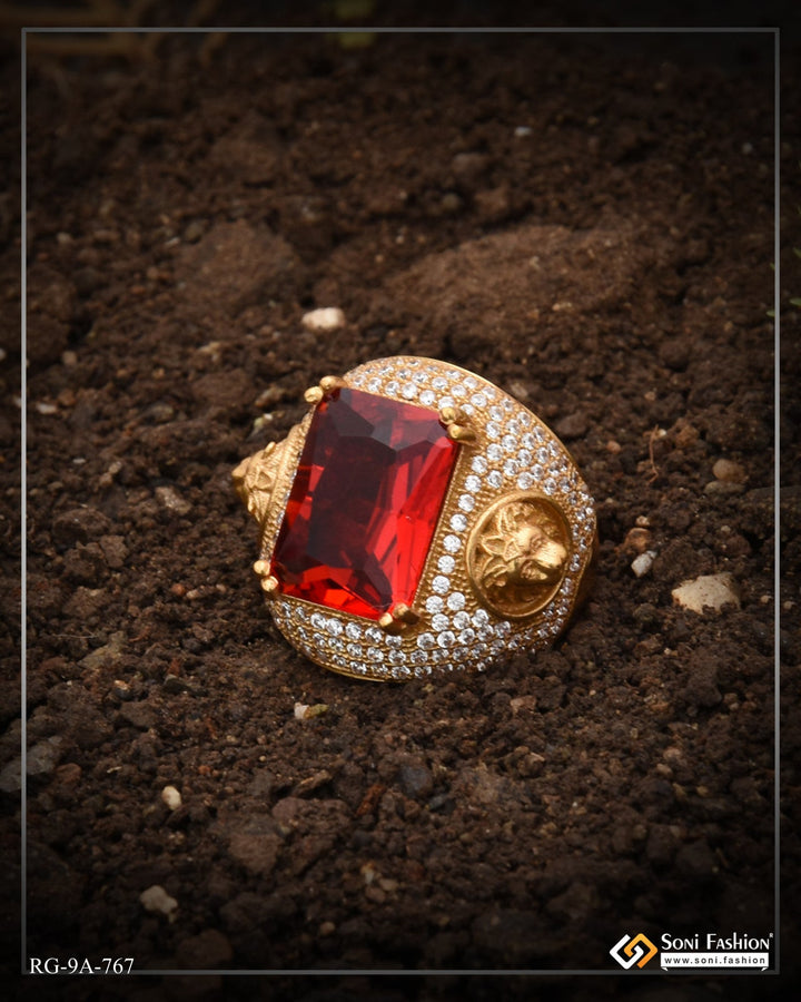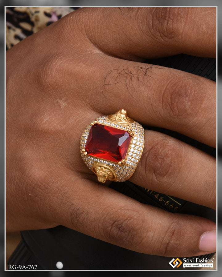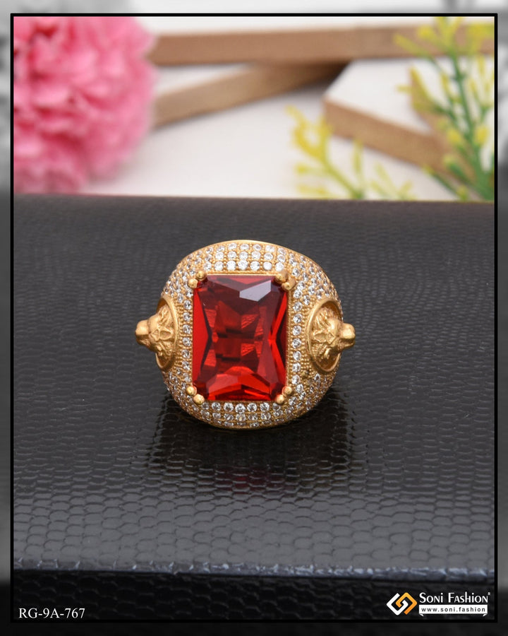 Red Stone with Diamond Chic Design Superior Quality Gold Plated Ring - Style A767
