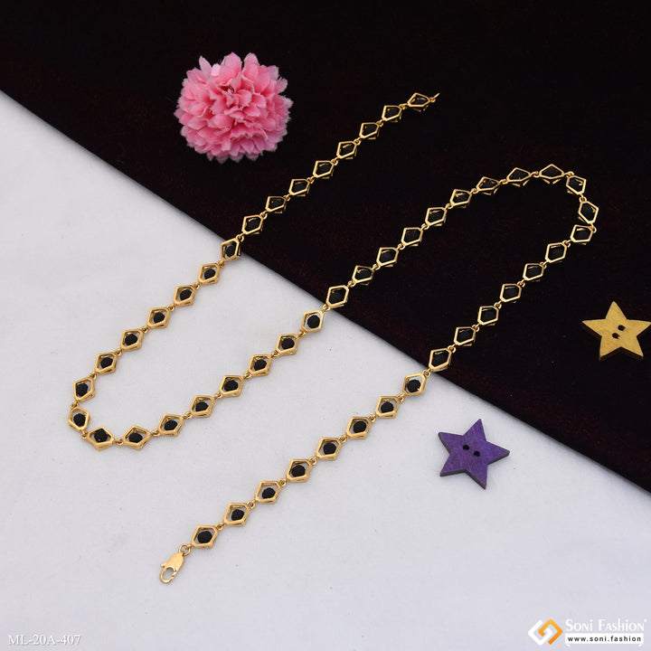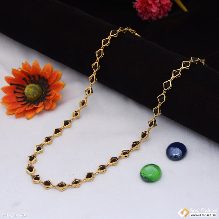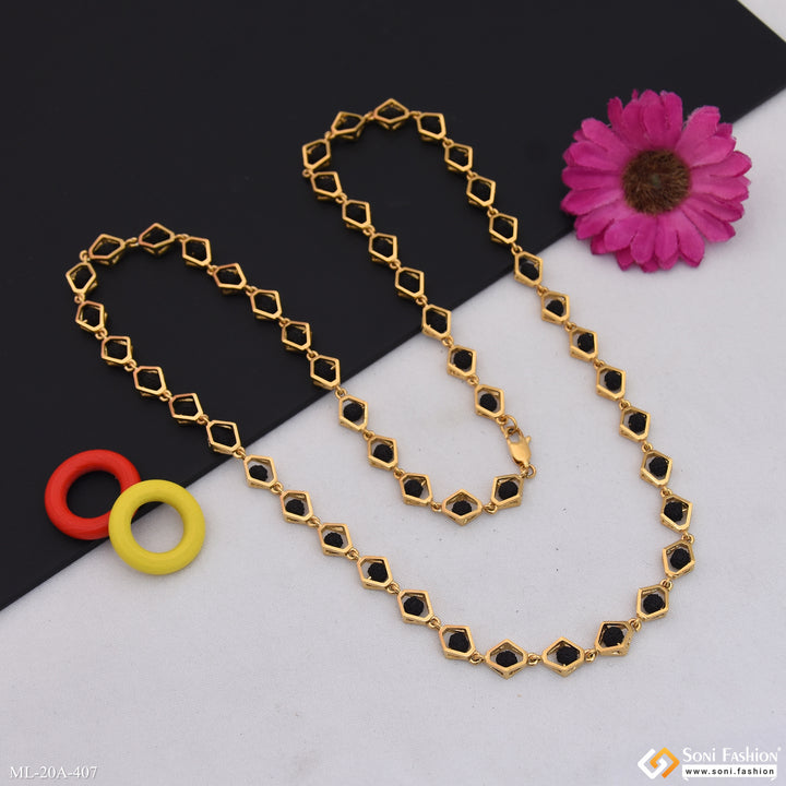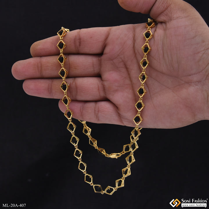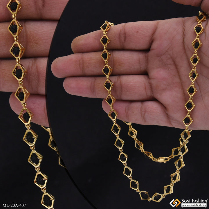 Discover the luxurious and religious essence of our Trending Design 18k Gold Plated Rudraksha Mala for Men. Made with high-quality brass and a shining 18K gold plating, this royal mala features traditional and plain black beads. Perfect for adding a touch of elegance and spirituality to any outfit.