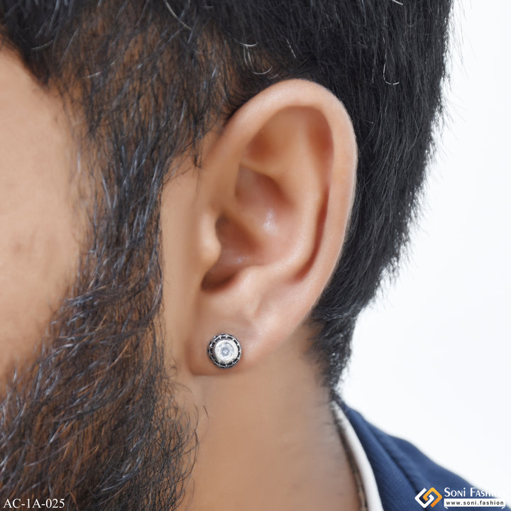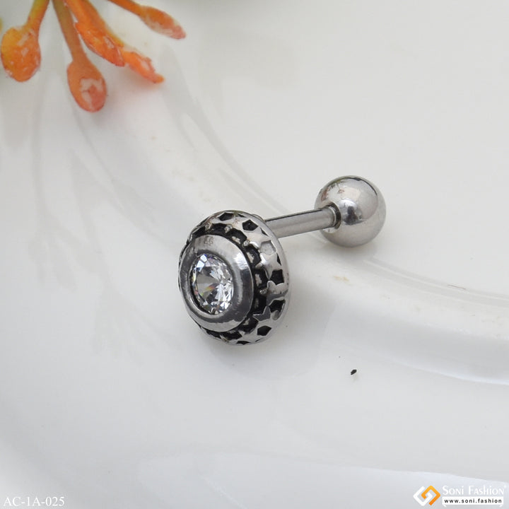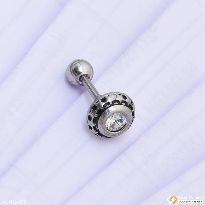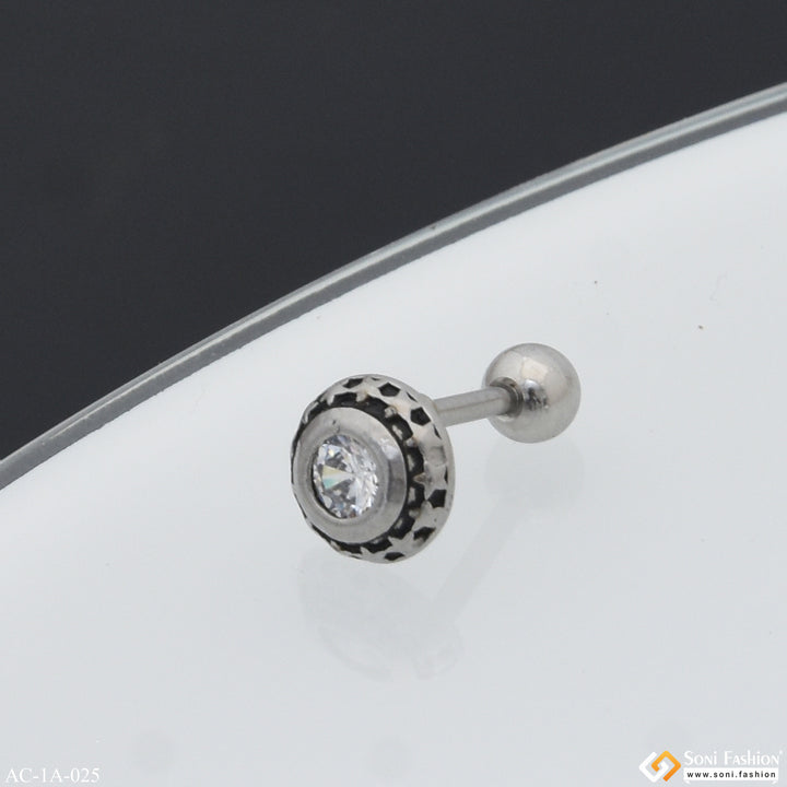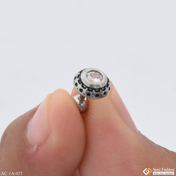 White Round Stone Star Design Surgical Steel for Men (1 Pc) - Style A025