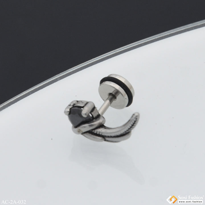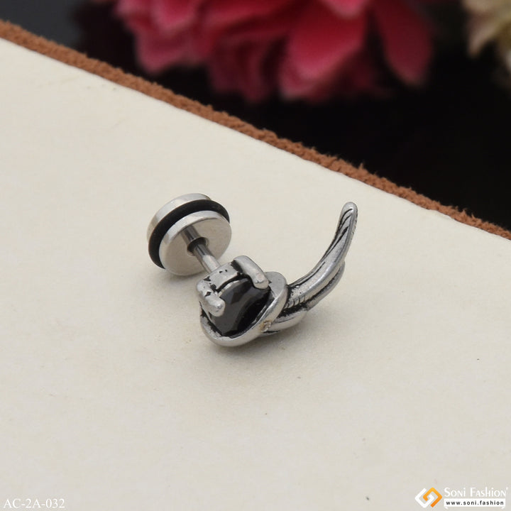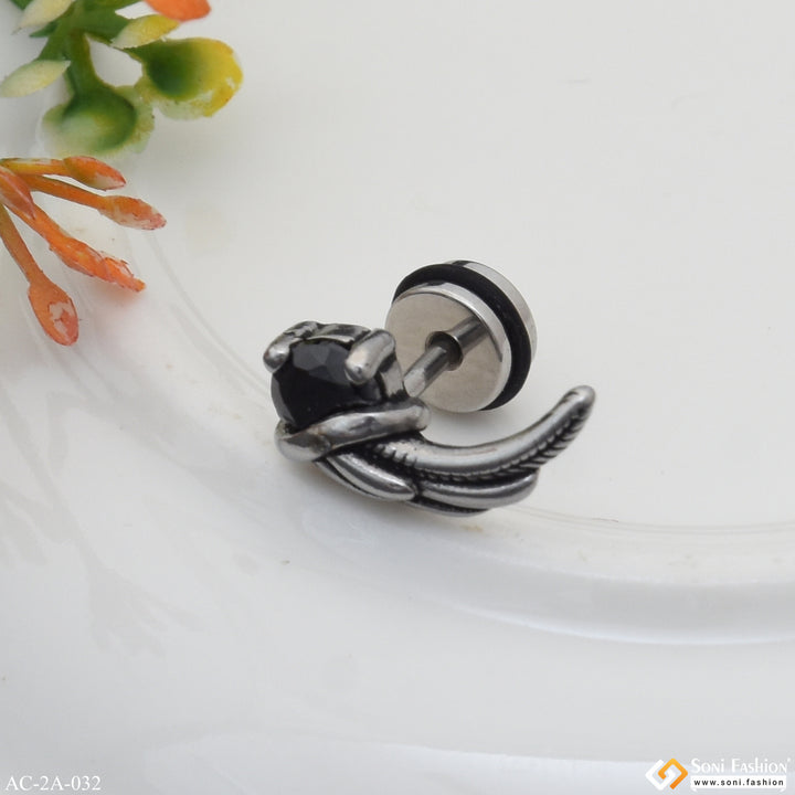 Wing With Black Stone Surgical Steel Stud Earring for Men (1 Pc) - Style A032