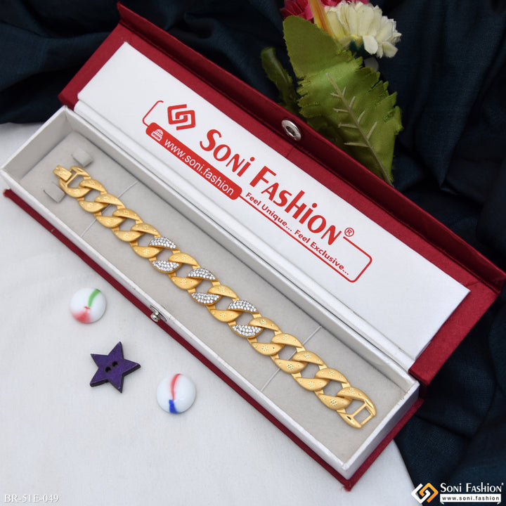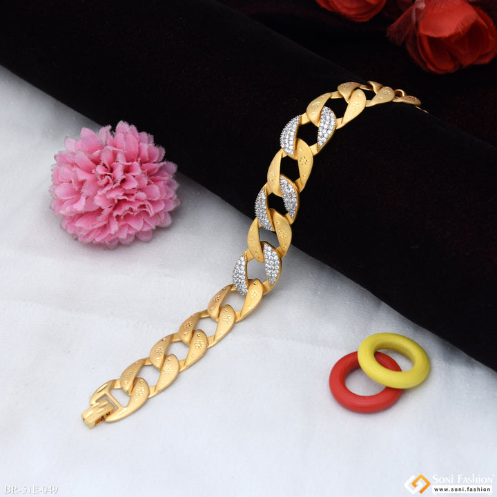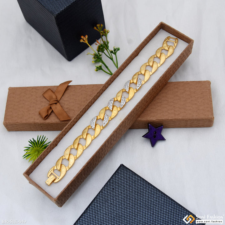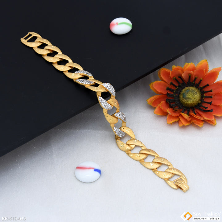 1 Gram Gold Plated Glittering Design Link Bracelet for Men - Style E049