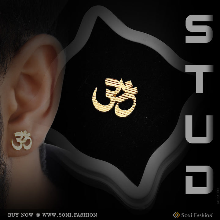 1 Gram Gold Plated Om Antique Design Stud Earring for Men (1 Pc) - Style A046