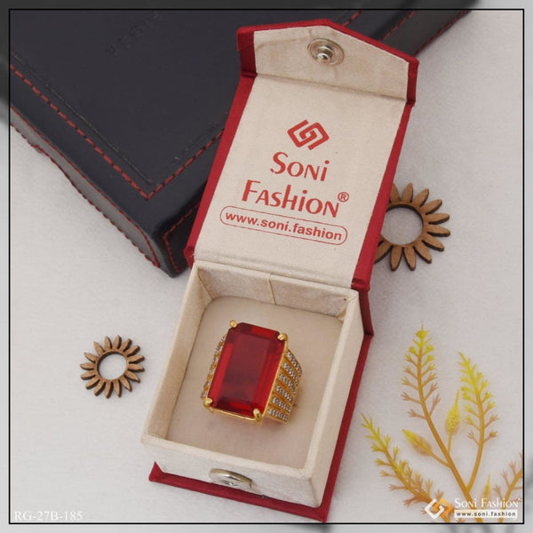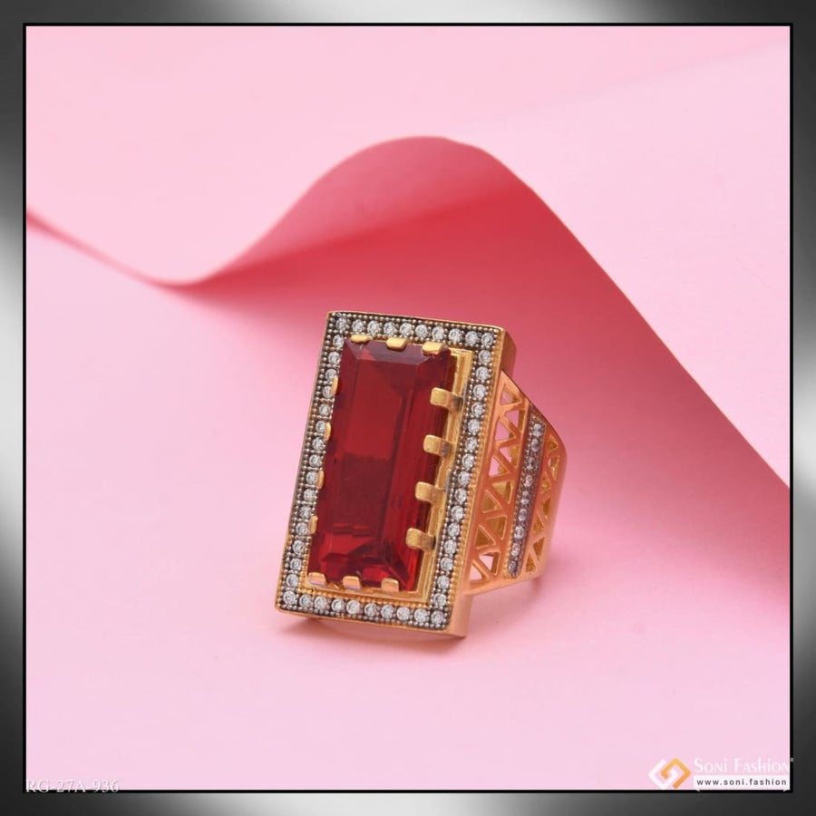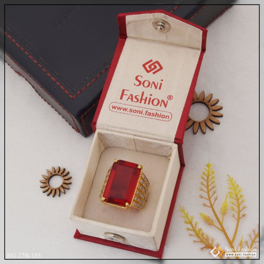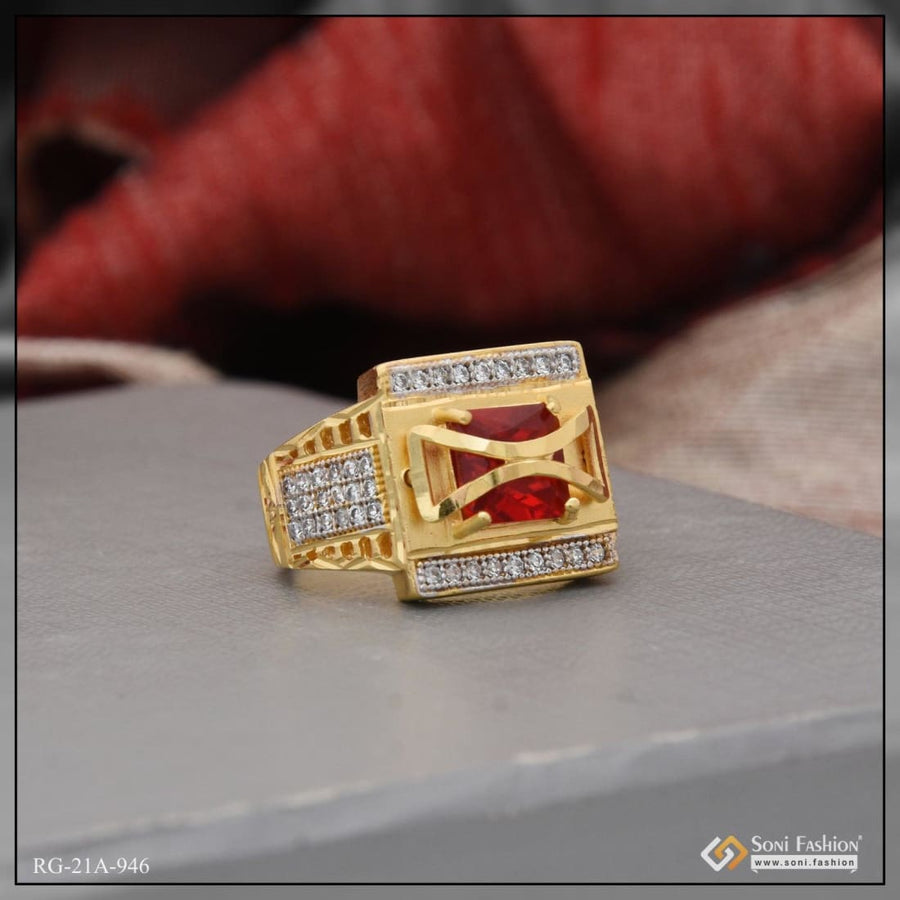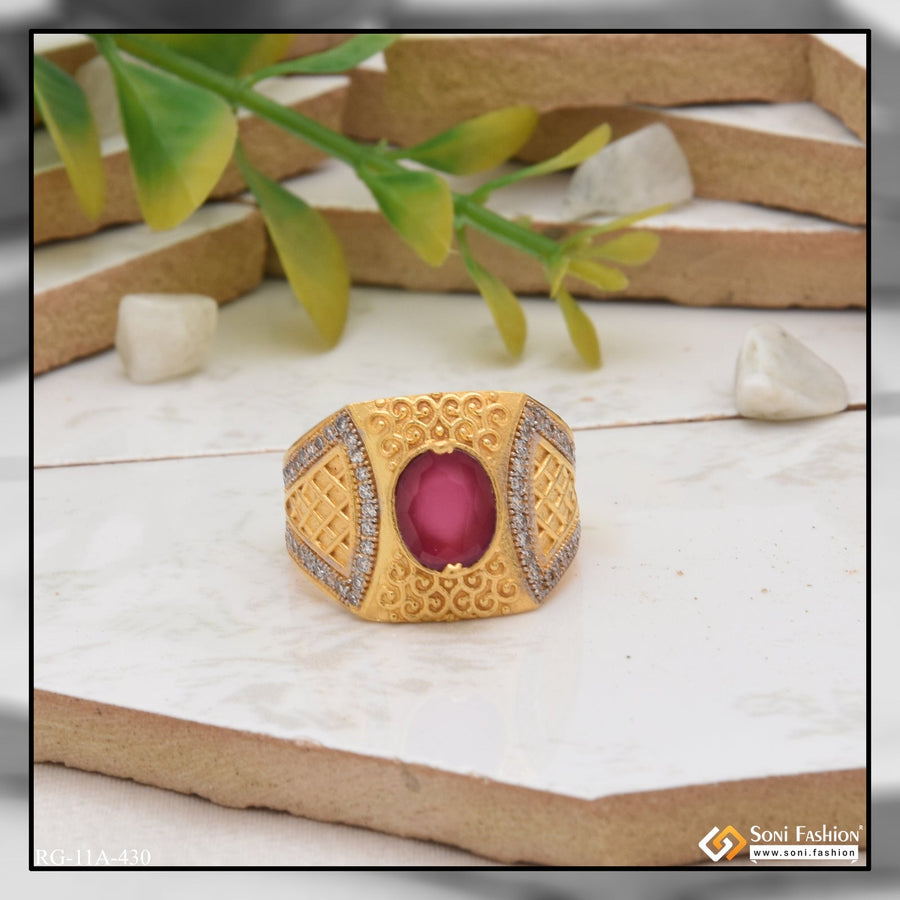 1 Gram Gold Plated Red Stone Latest Design High-quality Ring For Men - Style B161