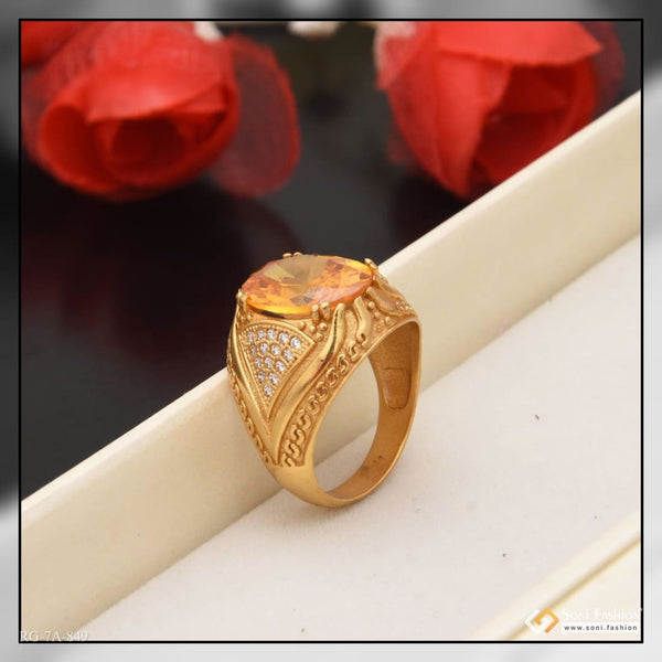 1 Gram Gold Plated Yellow Stone With Diamond Best Quality Ring For Men - Style B203