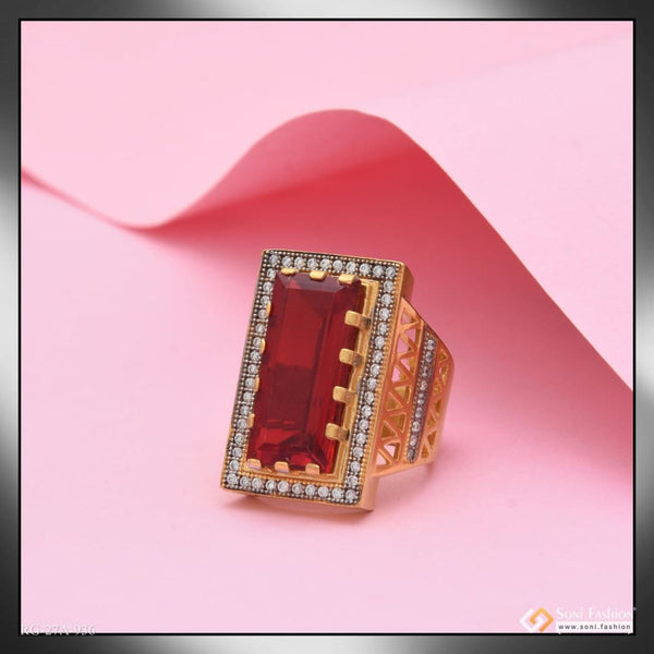 1 Gram Gold Plated Red Stone with Diamond Funky Design Ring for Men - Style B252