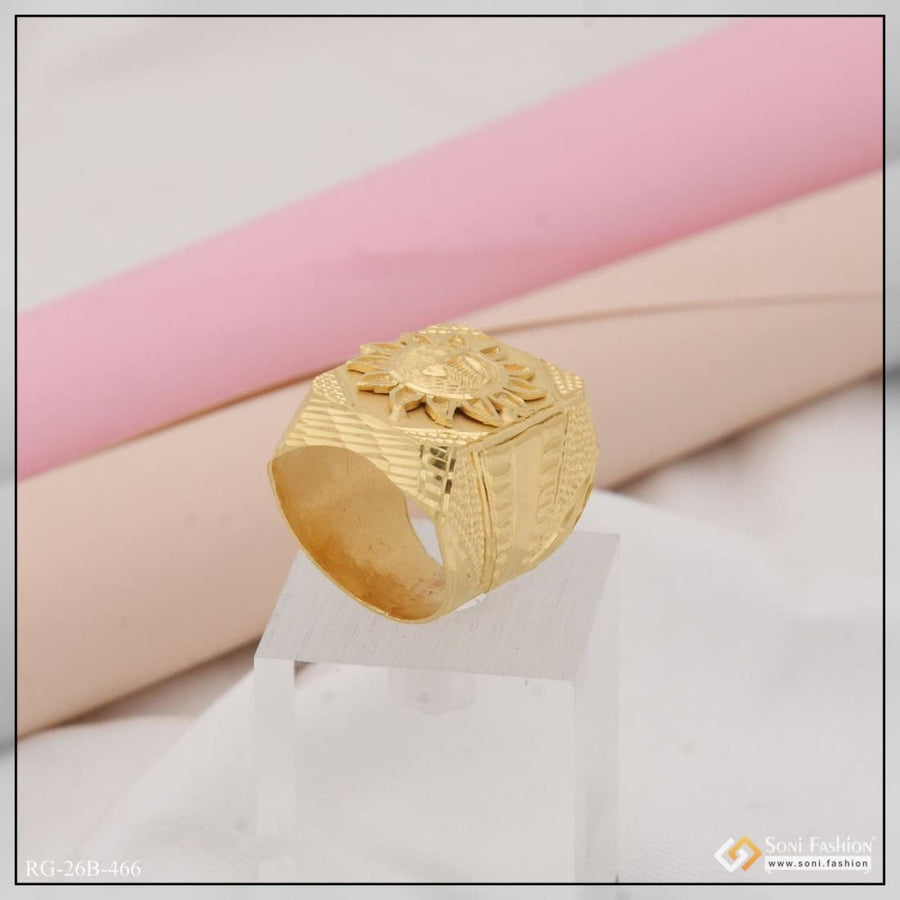 This superior quality unique design ring for men from 1 Gram Gold Plated Sun is adorned with a combination of spiritual and shining features, such as a rectangle shape, Rajwadi...