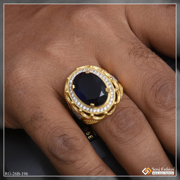 1 Gram Gold Plated Blue Stone with Diamond Antique Design Ring for Men - Style B196