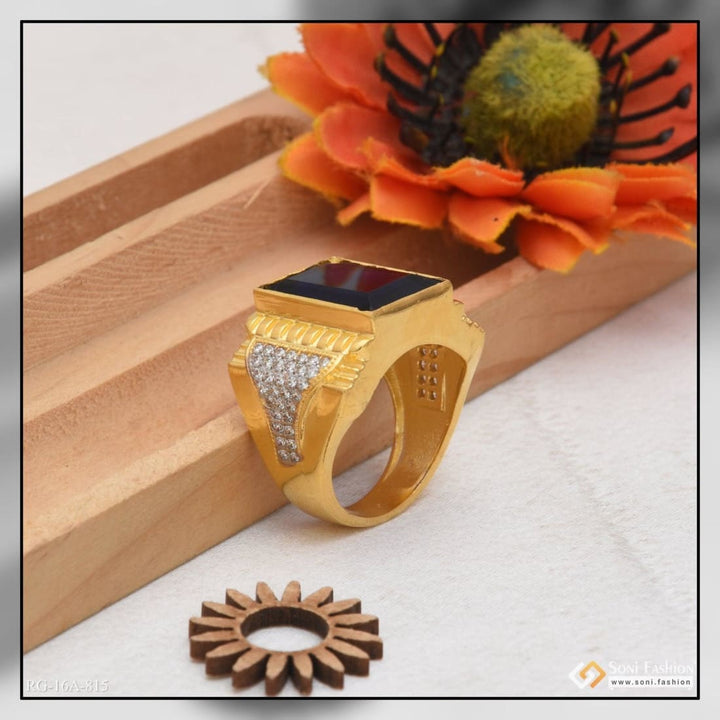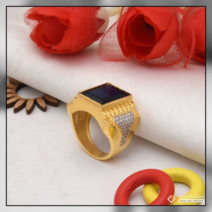 1 Gram Gold Plated Blue Stone with Diamond Best Quality Ring for Men - Style A815