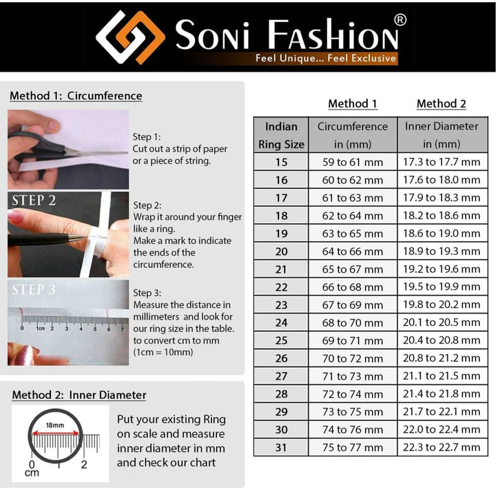 Kindly check your ring size in our chart, and make order. Rings are not covered in Return, Replacement or Exchange Policy.