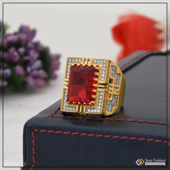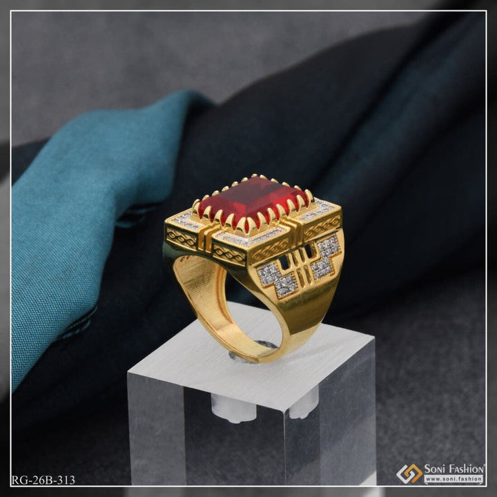 1 Gram Gold Plated Red Stone with Diamond Best Quality Ring for Men - Style B313