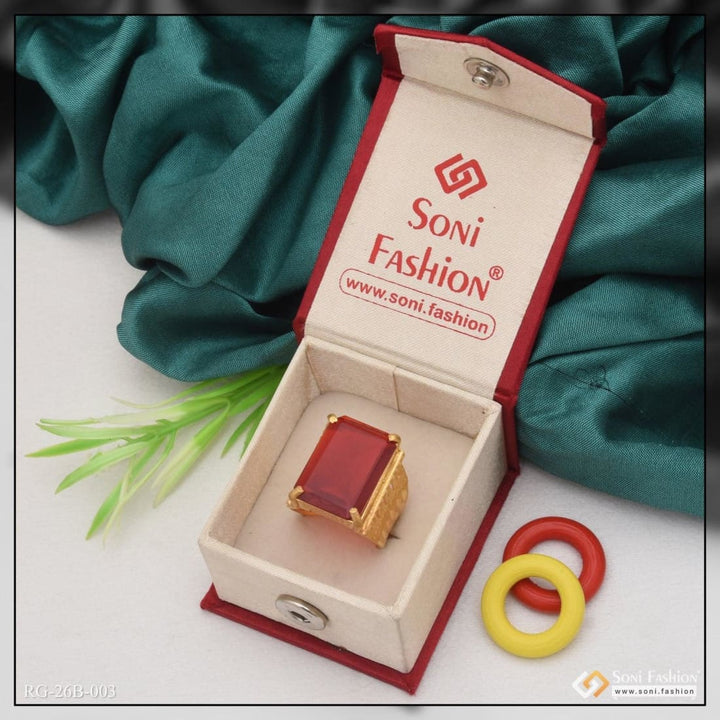 1 Gram Gold Forming Red Stone with Diamond Best Quality Ring for Men - Style B003