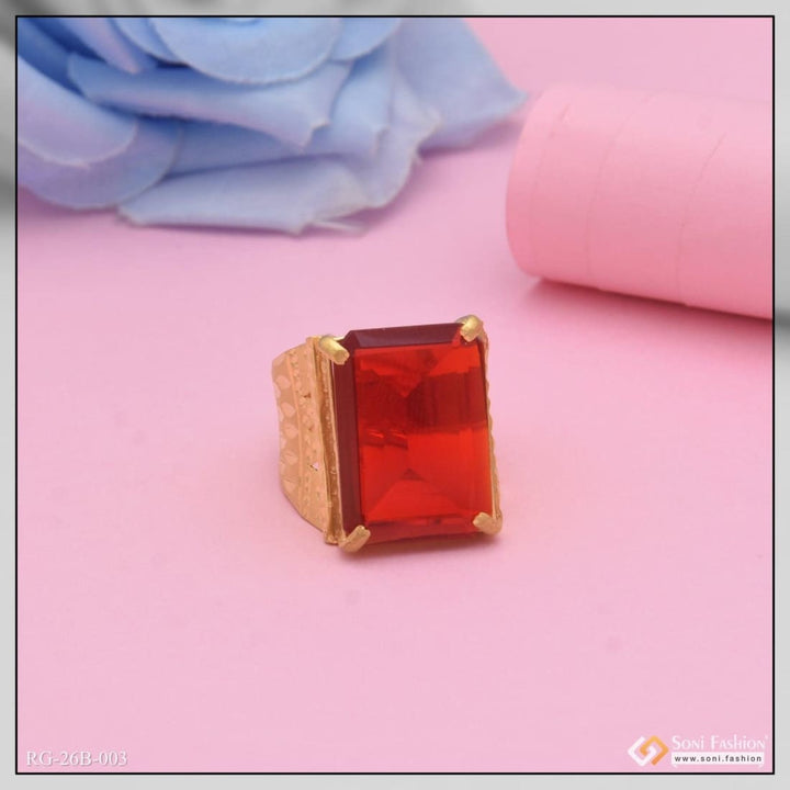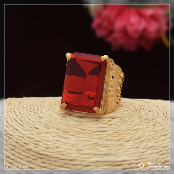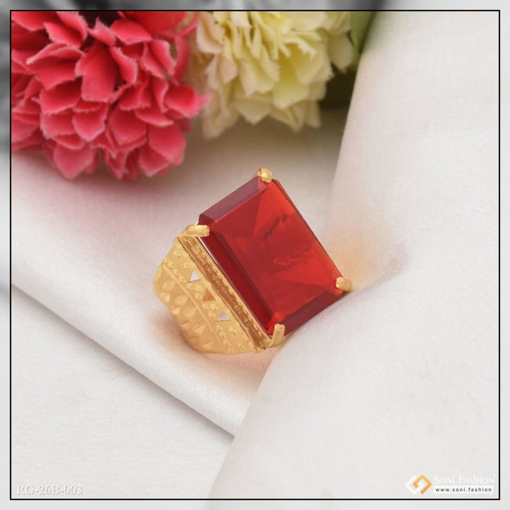 1 Gram Gold Plated Red Stone With Diamond Best Quality Ring