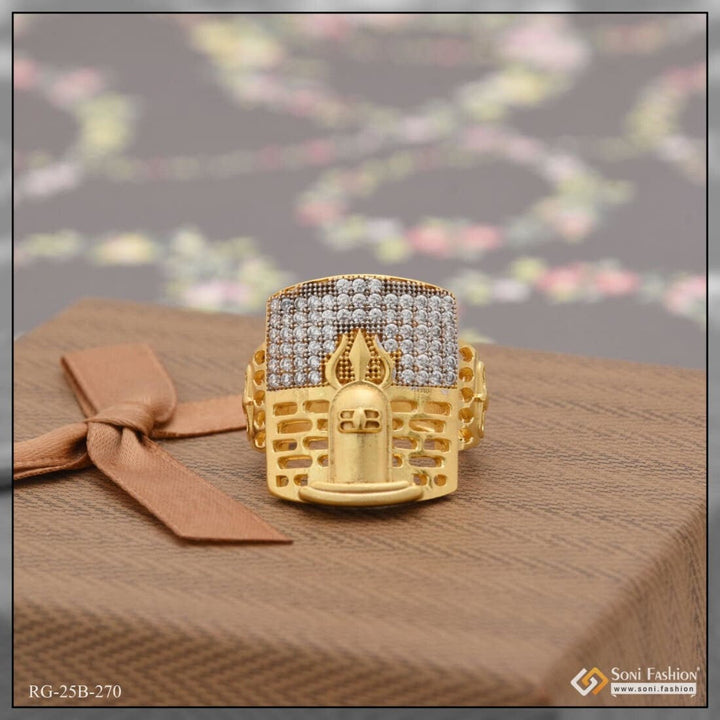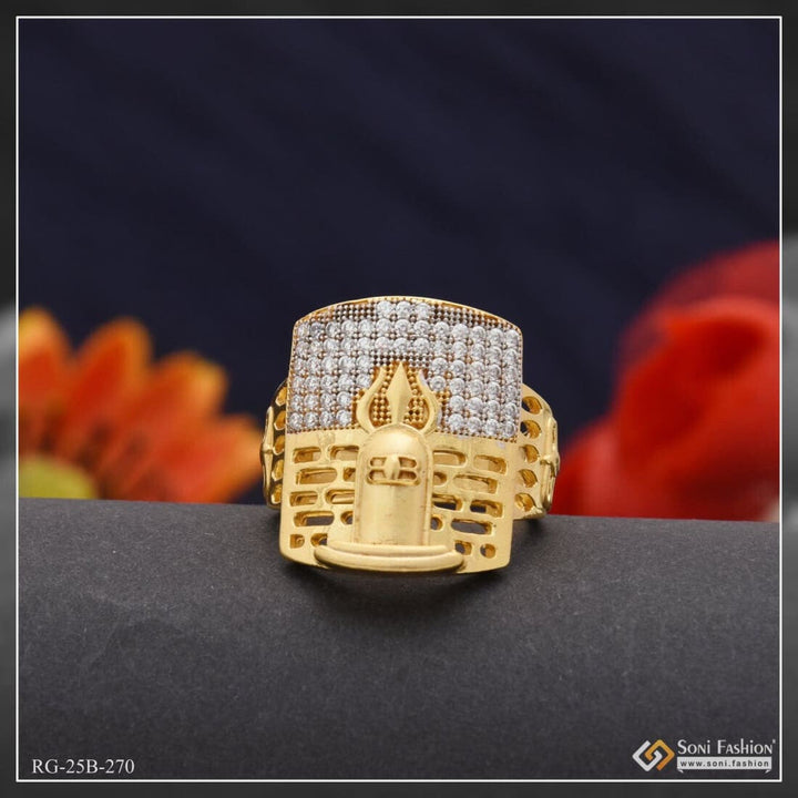 1 Gram Gold Plated Shivling With Diamond Gold Plated Ring For Men - Style B270