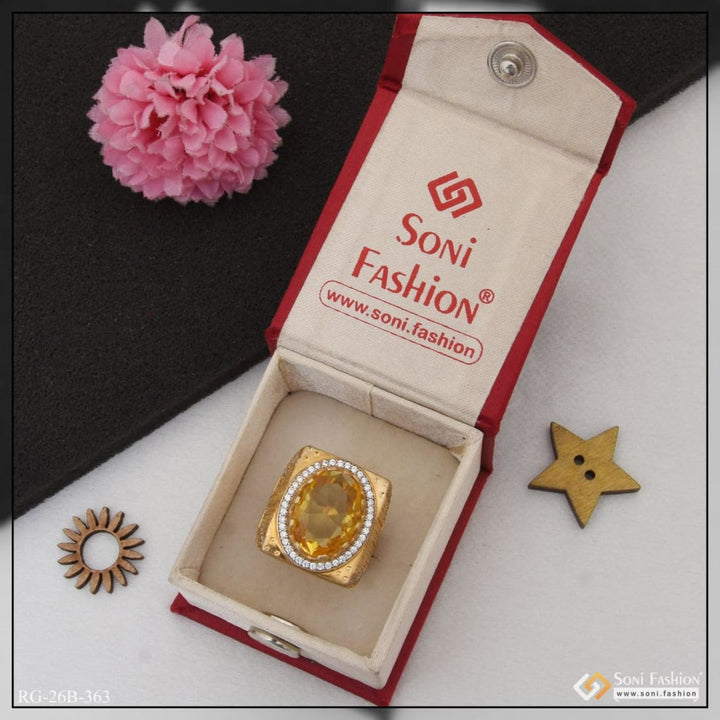 1 Gram Gold Plated Yellow Stone with Diamond Hand-Crafted Ring for Men - Style B363