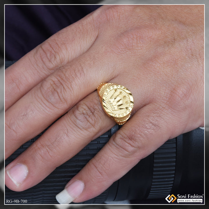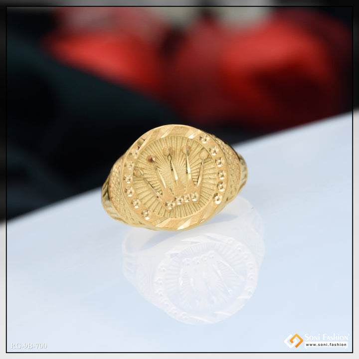 Elevate your style with this striking Crown Prominent Design Gold Plated Ring for Men. Crafted from quality brass with lustrous gold plating, this round ring features an intricate crown motif that commands attention. The hidden regular plating ensures durability and lasting shine, making it perfect for daily wear or special occasions.