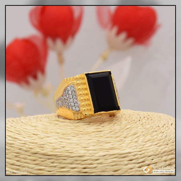 1 Gram Gold Plated Black Stone Lovely Design High-Quality Ring for Men - Style B478
