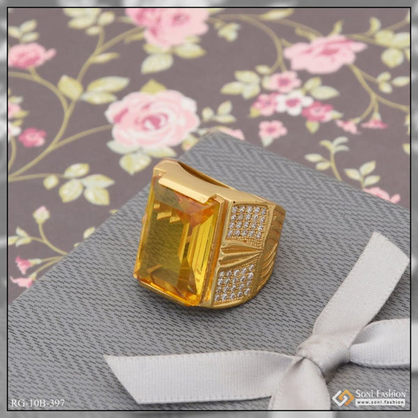 1 Gram Gold Plated Popular Design Yellow Stone Ring for Men - Style B683