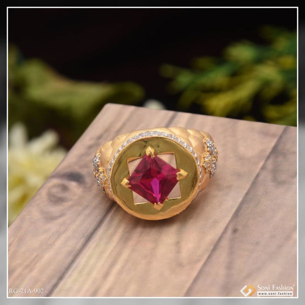 1 Gram Gold Plated Red Stone with Diamond Best Quality Ring for Men - Style A254
