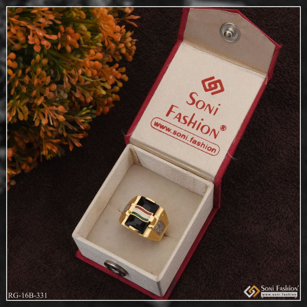 1 Gram Gold Plated Indian Flag On Black Stone Best Quality Ring for Men - Style B331
