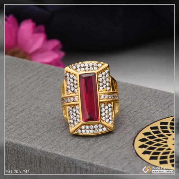 1 Gram Gold Plated- Red Stone with Diamond Gorgeous Design Ring - Style A735