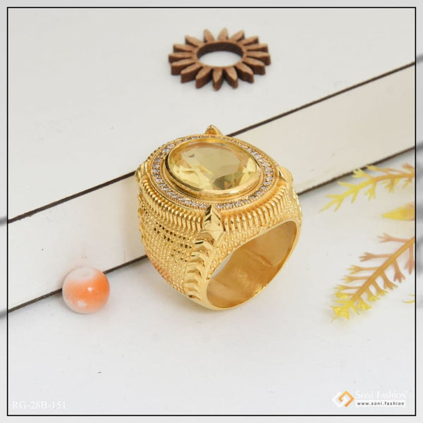 1 Gram Gold Forming Yellow Stone Attention-Getting Design Ring for Men - Style B151