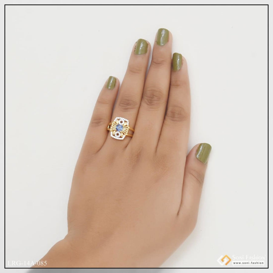 1 Gram Gold Plated Blue Stone With Diamond Designer Ring For Ladies - Style Lrg-087