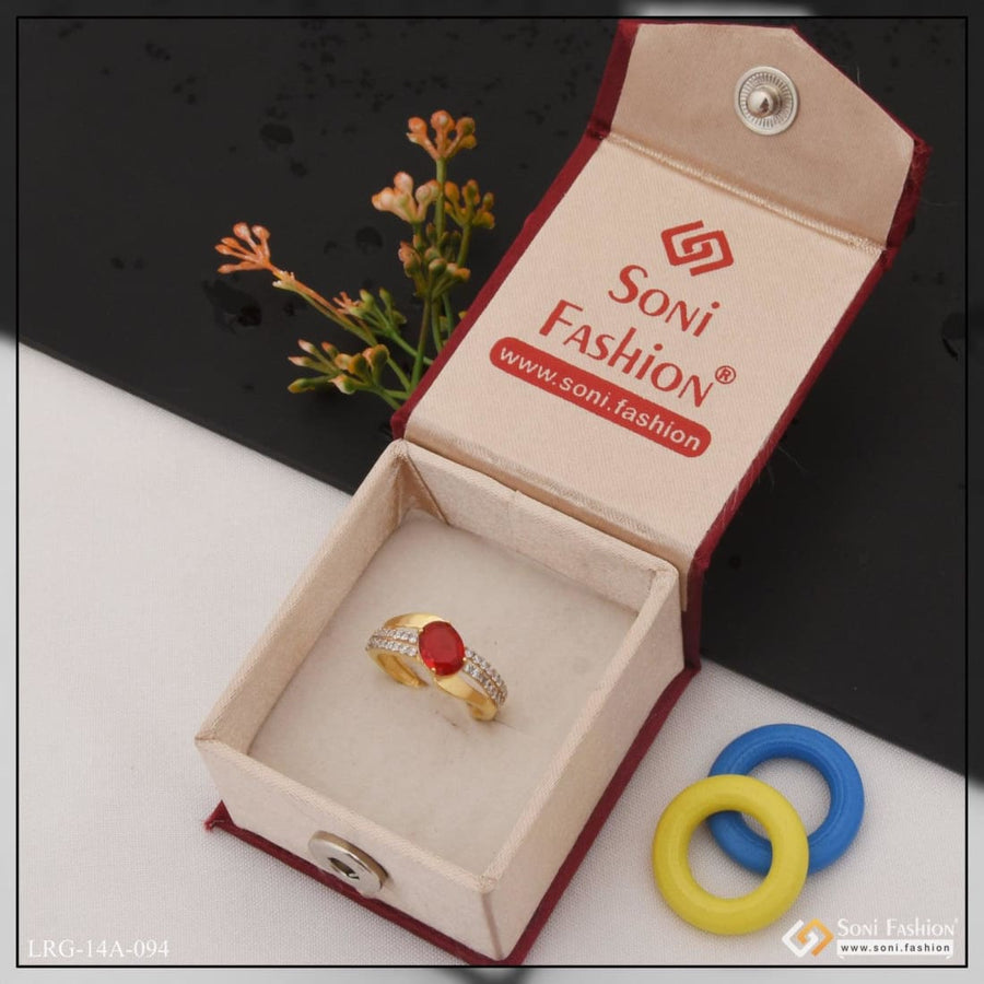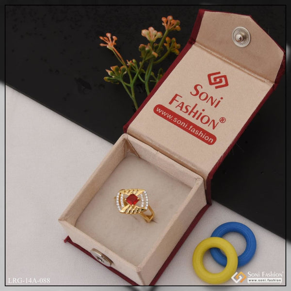 1 Gram Gold Plated Red Stone With Diamond Chic Design Ring For Ladies - Style Lrg-094