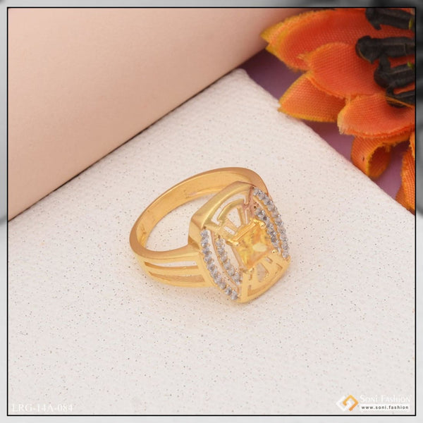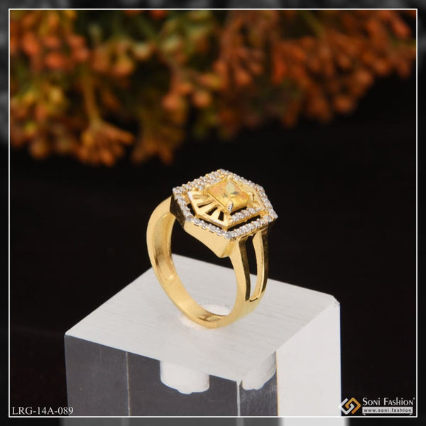 1 Gram Gold Plated Yellow Stone With Diamond Designer Ring For Ladies - Style Lrg-089