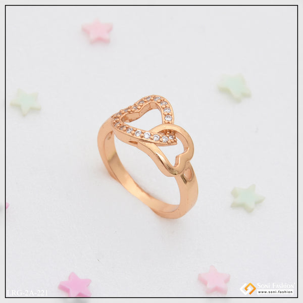 1 Gram Gold Plated Heart Shape Diamond Ring for Ladies - Style A256