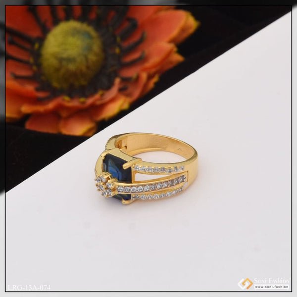 1 Gram Gold Plated Blue Stone With Diamond Fancy Design Ring For Lady - Style Lrg-074