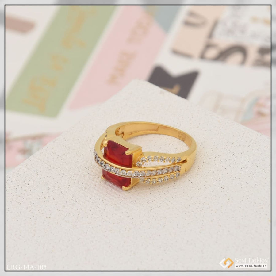 1 Gram Gold Plated Red Stone with Diamond New Style Ring for Ladies - Style LRG-105