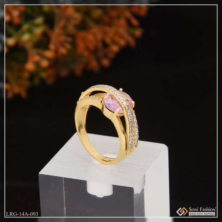 1 Gram Gold Plated Purple Stone Artisanal Design Ring For Ladies - Style Lrg-093