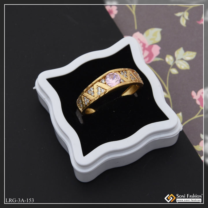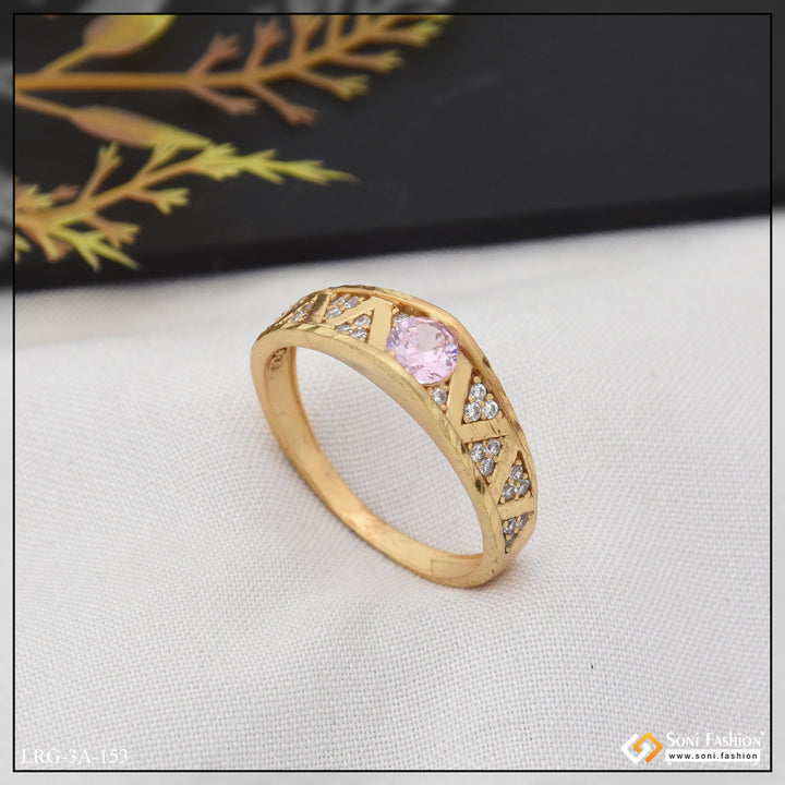 Experience luxury with our Exclusive Design with Diamond Chic Design Gold Plated Ring for Ladies. This royal and stylish ring features a textured and shining golden finish, accented with a charming diamond and beautiful purple detail. The latest trend in women's fashion, expertly crafted with brass and Hid_Reg_Plating. Elevate your style game with this exquisite piece.