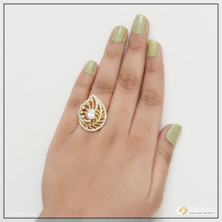 White Stone with Diamond Exclusive Design Gold Plated Ring for Ladies - Style LRG-132