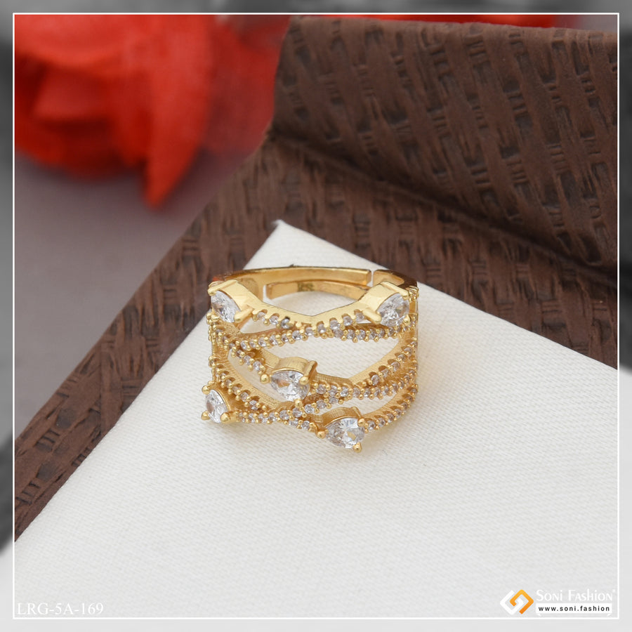 Lovely Design with Diamond Designer Gold Plated Ring for Ladies - Style LRG-172