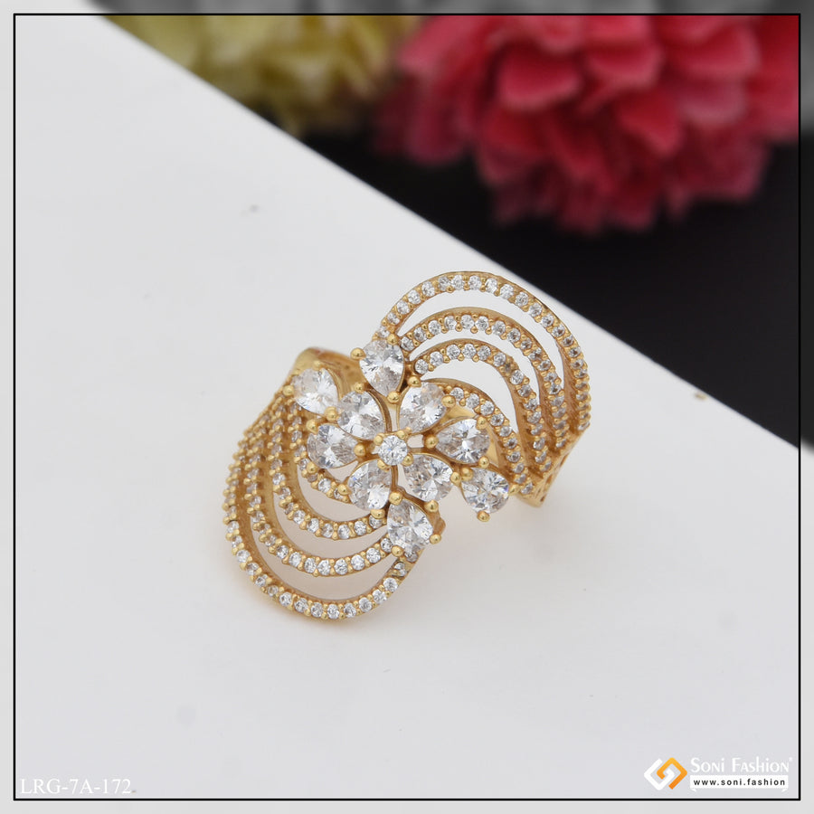 1 Gram Gold Plated With Diamond Eye-catching Design Ring For Ladies - Style Lrg-107