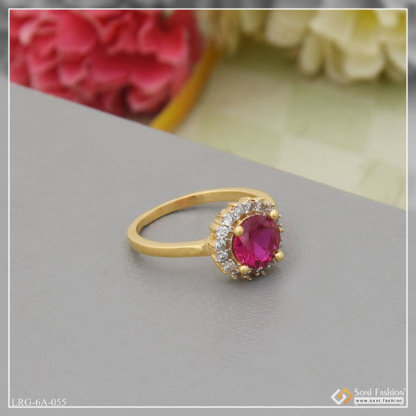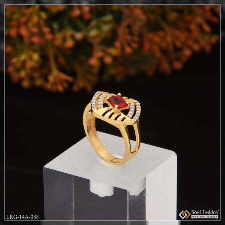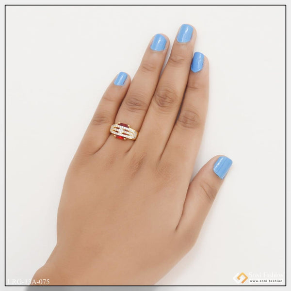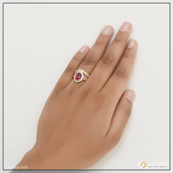 1 Gram Gold Plated Red Stone with Diamond New Style Ring for Ladies - Style LRG-105