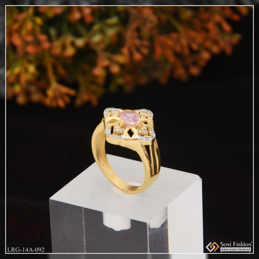 1 Gram Gold Plated Pink Stone With Diamond Pretty Design Ring For Lady - Style Lrg-058