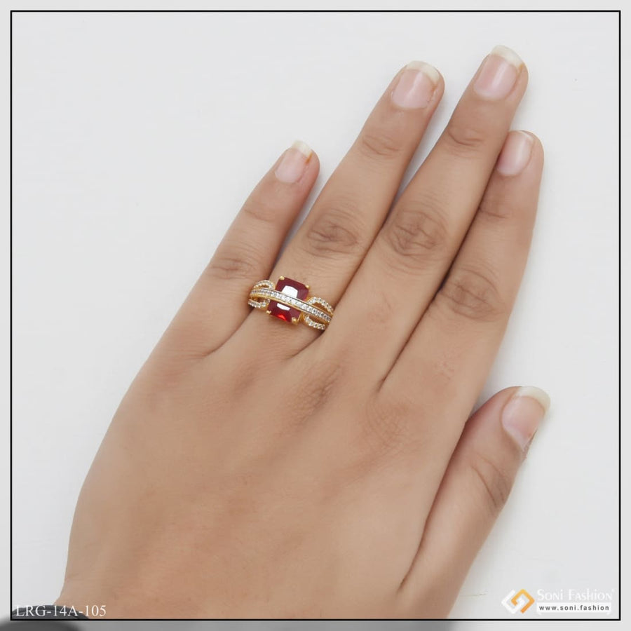 1 Gram Gold Plated Red Stone With Diamond Chic Design Ring For Ladies - Style Lrg-075