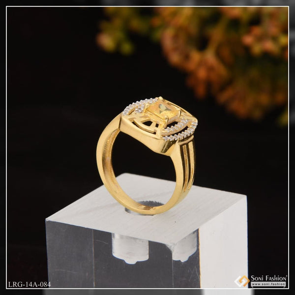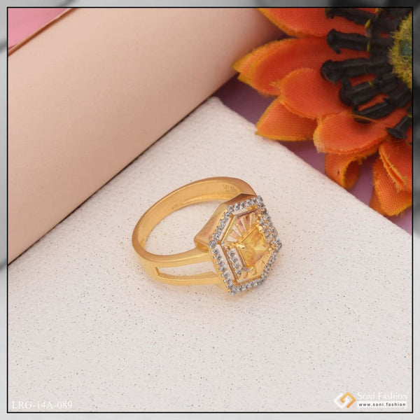 1 Gram Gold Plated Yellow Stone With Diamond Designer Ring For Ladies - Style Lrg-084