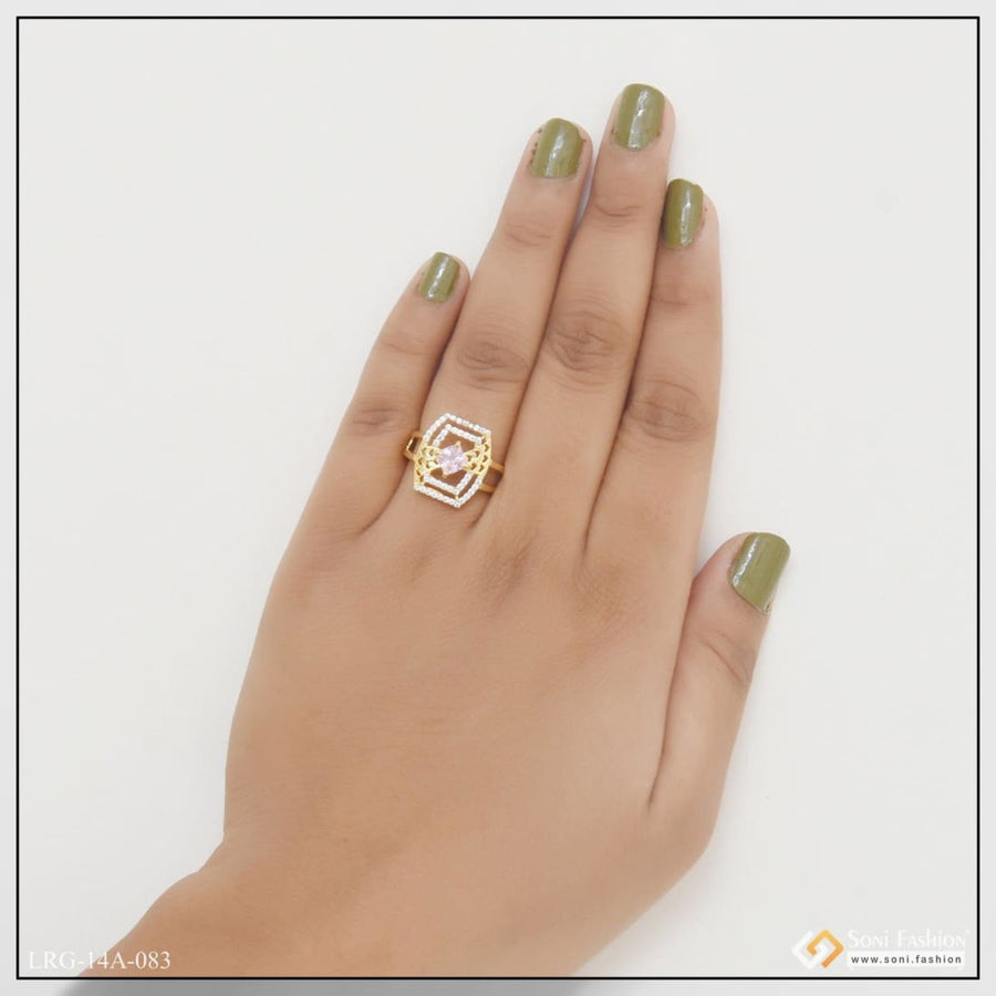 1 Gram Gold Plated Purple Stone With Diamond Designer Ring For Ladies - Style Lrg-090