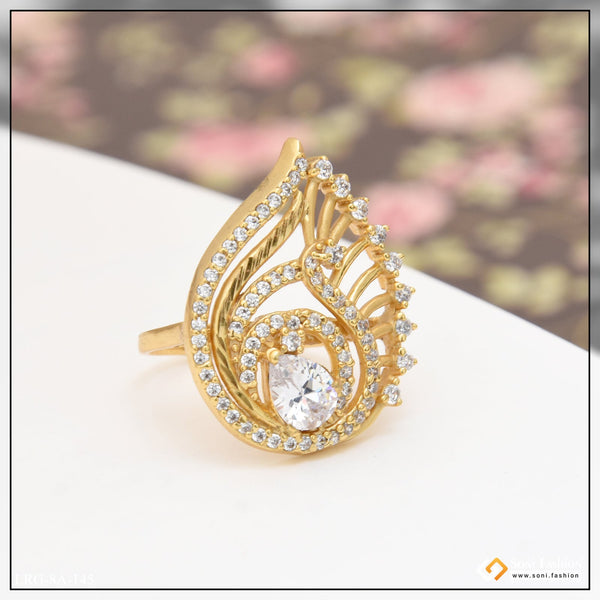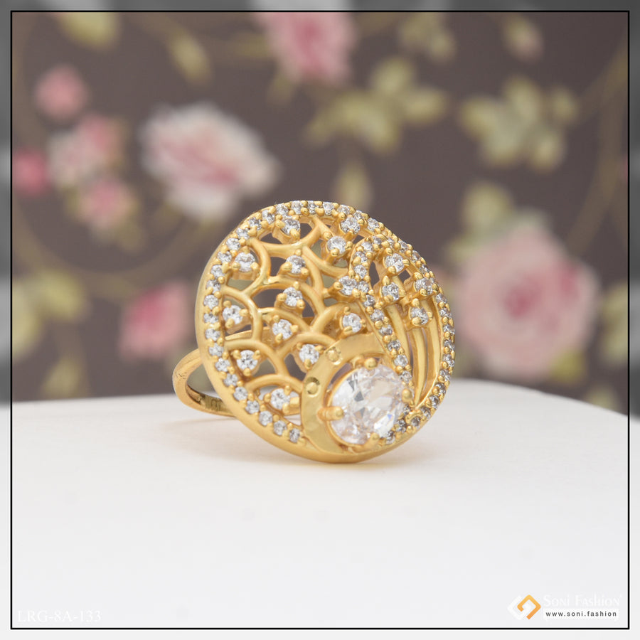 white Stone with Diamond Superior Quality Gold Plated Ring for Ladies - Style LRG-133