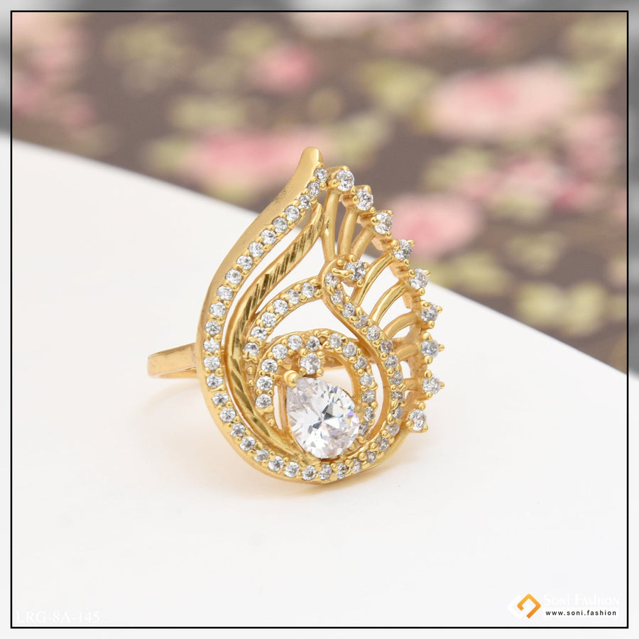 1 Gram Gold Plated Yellow Stone With Diamond Designer Ring For Ladies - Style Lrg-089