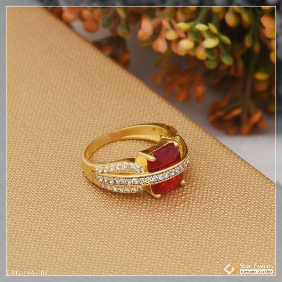 1 Gram Gold Plated Red Stone with Diamond New Style Ring for Ladies - Style LRG-105