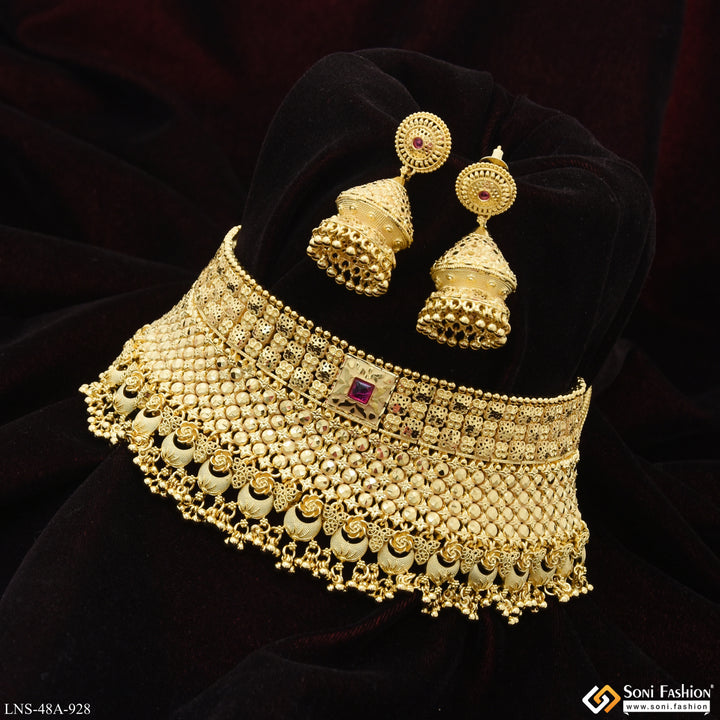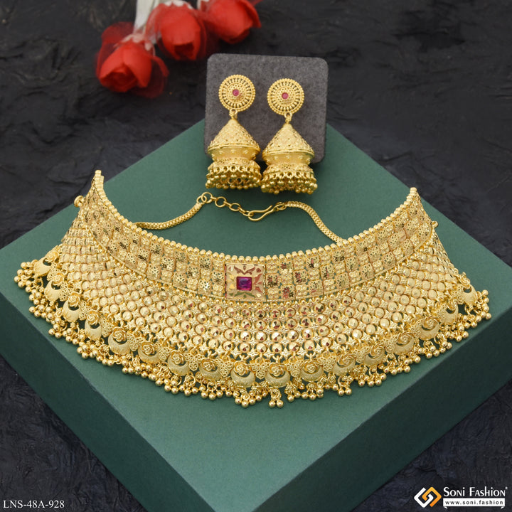 1 Gram Gold Plated Choker Necklace Set for Women - Style A928