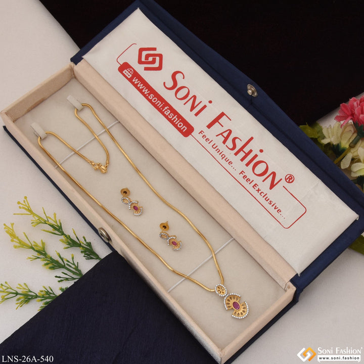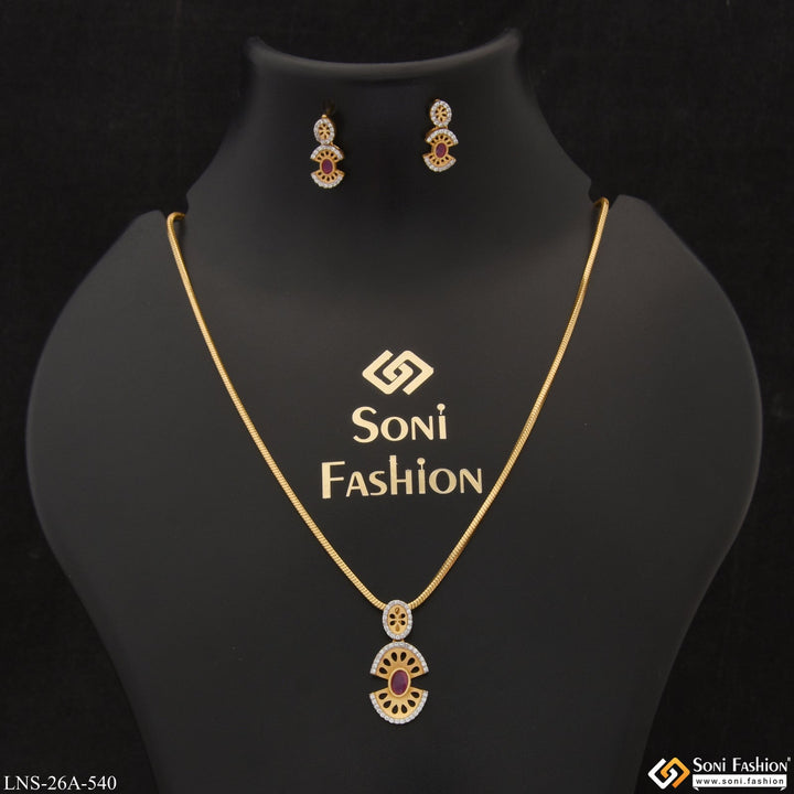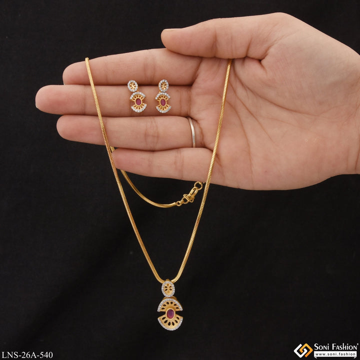1 Gram Gold Plated Hand-Finished Design Necklace Set for Ladies - Style A540