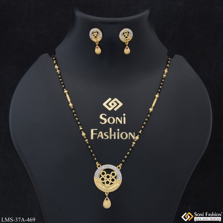 1 Gram Gold Plated with Diamond Designer Mangalsutra Set for Women - Style A469