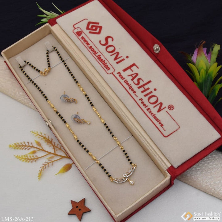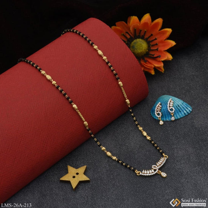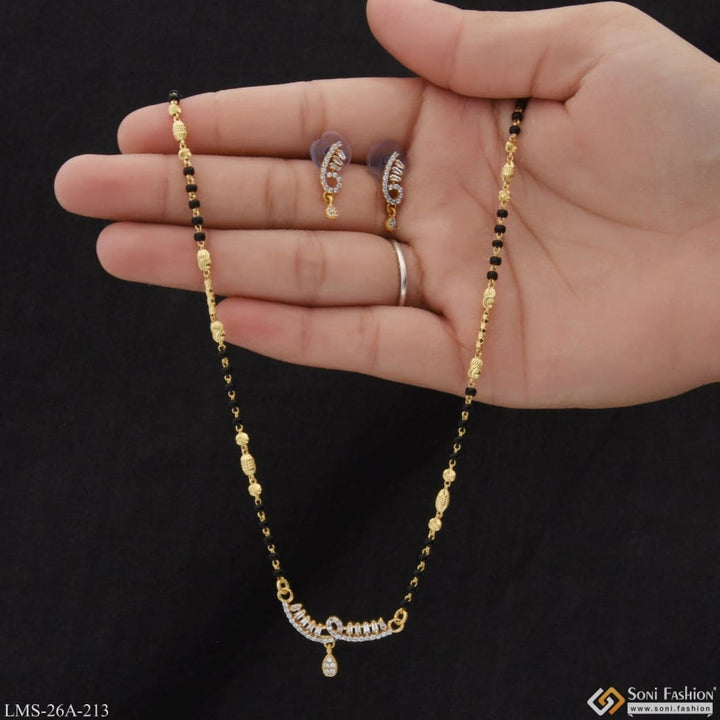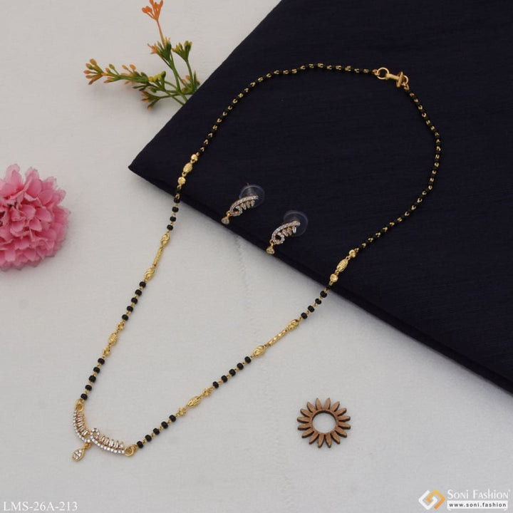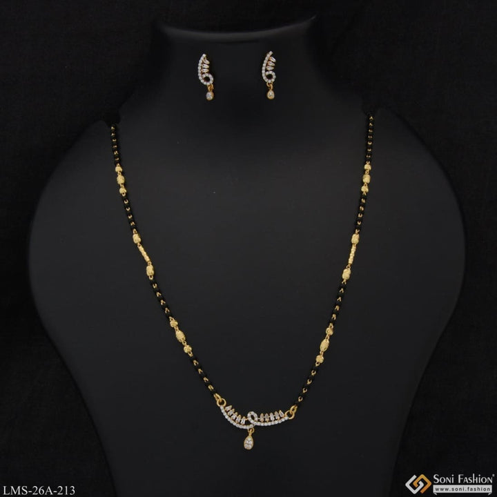 1 Gram Gold Plated With Diamond Fashionable Mangalsutra Set For Women - Style A213